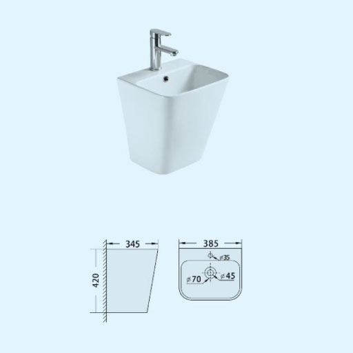 Chậu rửa lavabo liền chân gắn tường BR-W2002 không bao gồm phụ kiện (vòi, bộ xả….)
