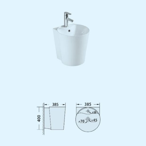 Chậu rửa lavabo liền chân gắn tường BR-W2003 không bao gồm phụ kiện (vòi, bộ xả….)