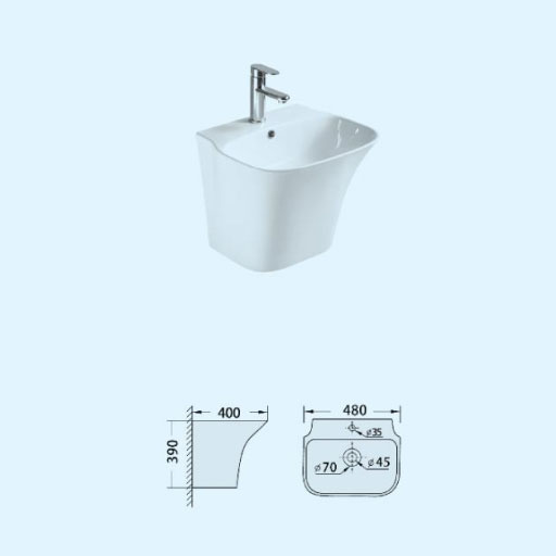 Chậu rửa lavabo liền chân gắn tường BR-W2004 không bao gồm phụ kiện (vòi, bộ xả….)