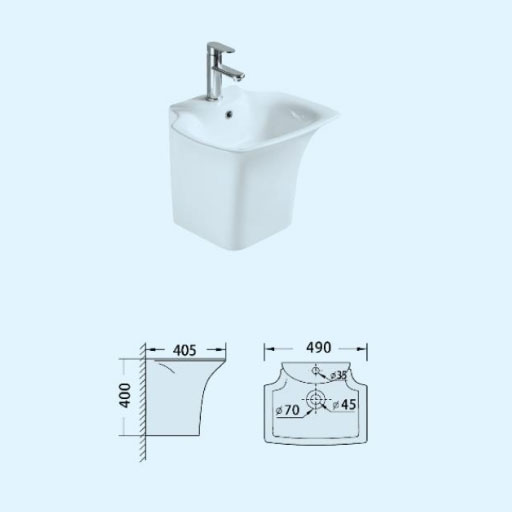Chậu rửa lavabo liền chân gắn tường BR-W2006 không bao gồm phụ kiện (vòi, bộ xả….)