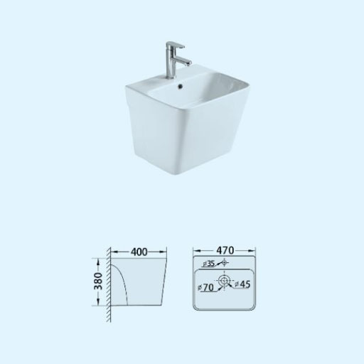 Chậu rửa lavabo liền chân gắn tường BR-W2007 không bao gồm phụ kiện (vòi, bộ xả….)