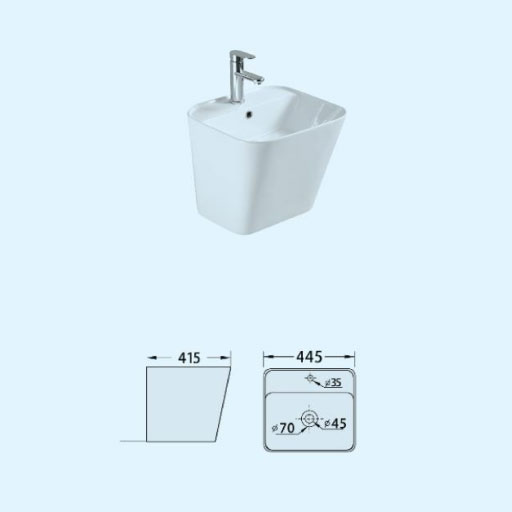 Chậu rửa lavabo liền chân gắn tường BR-W2008 không bao gồm phụ kiện (vòi, bộ xả….)